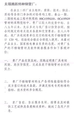 無錫騰躍特種鋼管有限公司創建于1987年,地處江蘇省無錫市惠山區洛社鎮。公司占地面積18萬平方米,現有員工350人,是一家專業生產不銹鋼無縫管的企業,年產能5萬噸。主要規格:外徑6~630mm、壁厚0.7~40mm。主要材質:奧氏體、奧氏體-鐵素體、鎳基合金等。 公司是中石化、中石油、中海油、核電的供應商網絡成員單位,是江蘇省AAA級信用單位。公司先后通過ISO9001質量管理體...